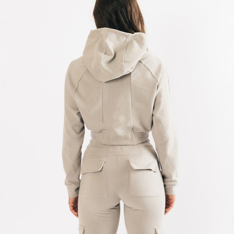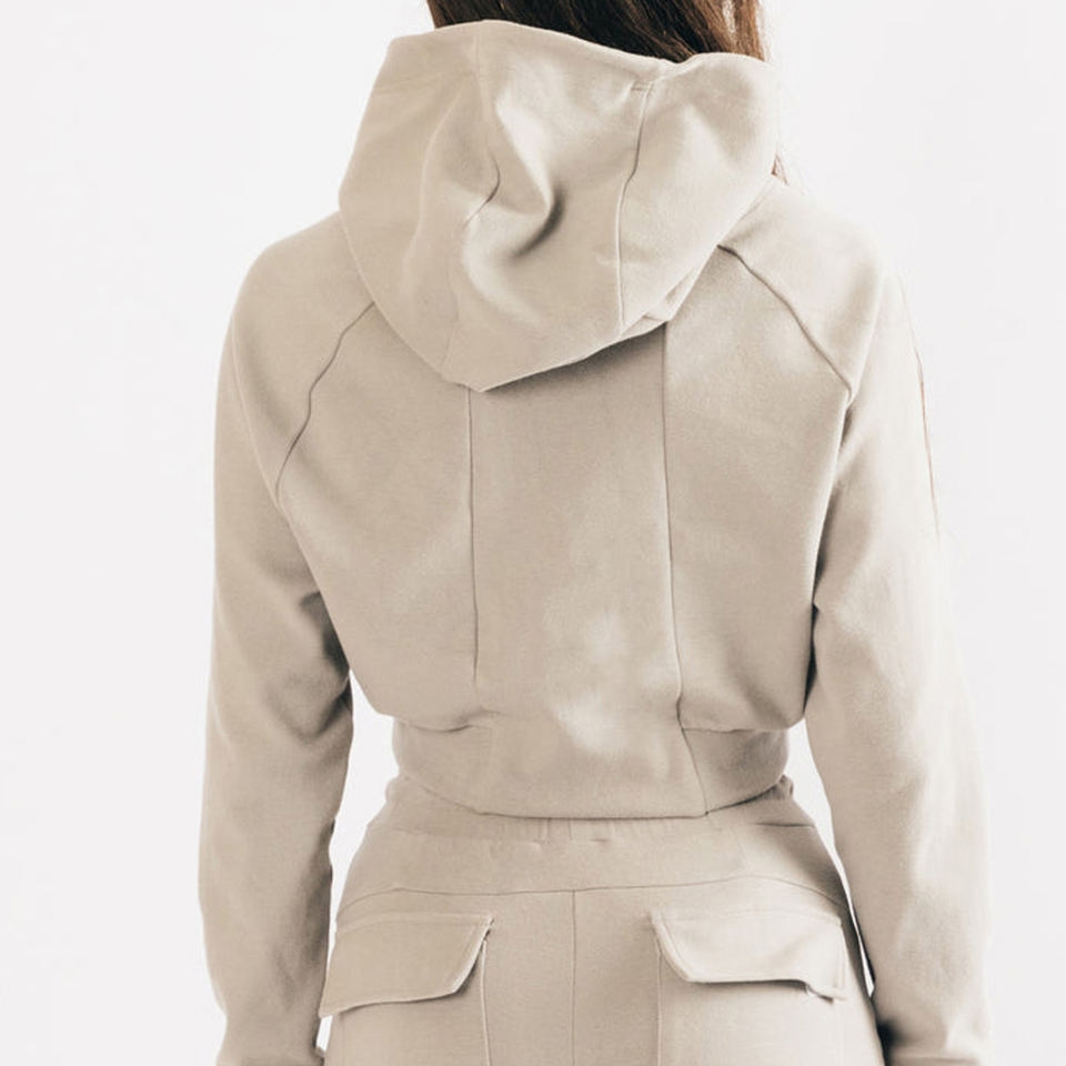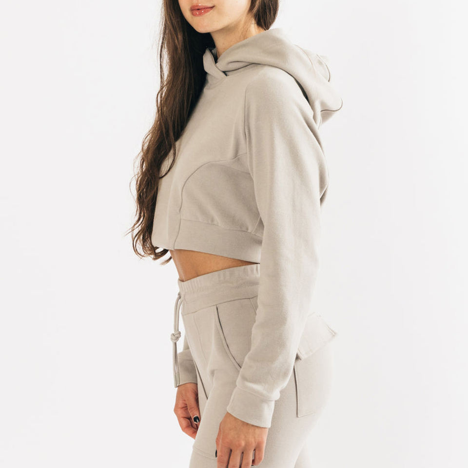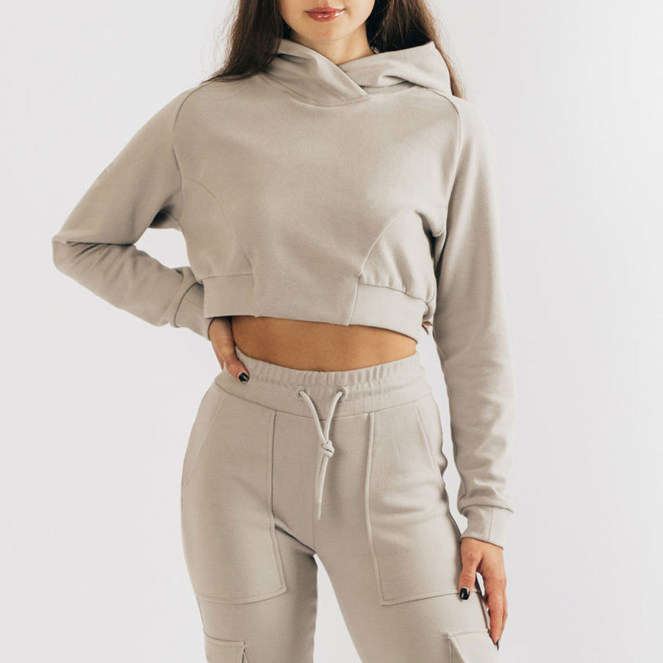 เสื้อฮู้ดครอปผ้าถักพิมพ์โลโก้ตามสั่งสำหรับผู้หญิง แฟชั่นล่าสุด ผลิตจากผ้าฝ้าย 100%
