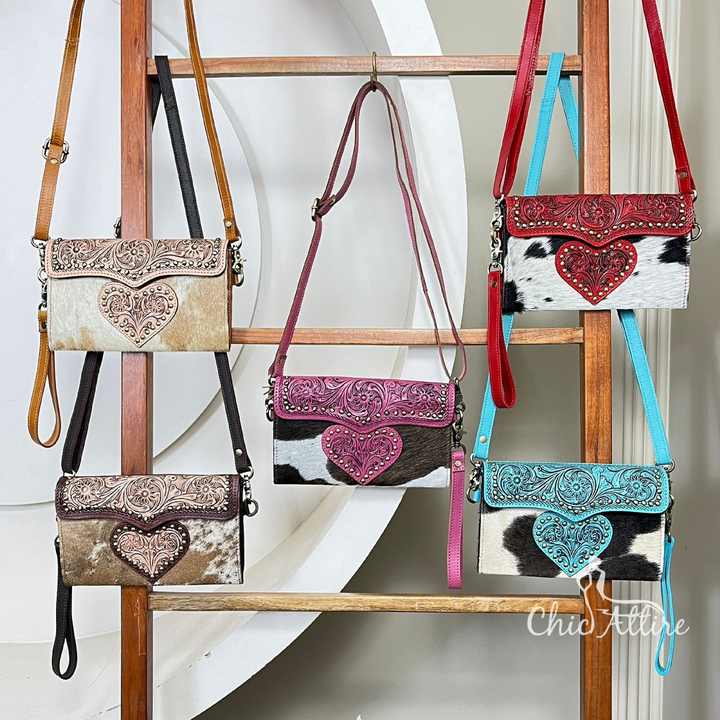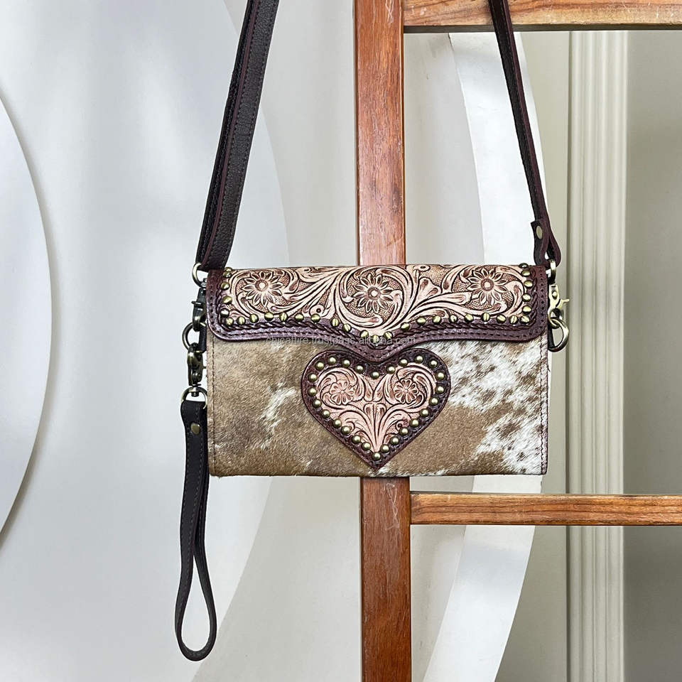 กระเป๋าหนังวัวแท้ลายแกะสลักสไตล์ตะวันตก รุ่นใหม่ล่าสุด ดีไซน์รูปหัวใจ สะพายไหล่หรือสะพายข้าง ขนาดมินิ สำหรับผู้หญิง