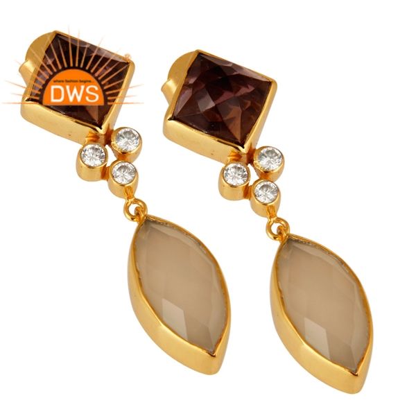 ต่างหูห้อยประดับพลอยแอมเมทิสต์ธรรมชาติทรงลูกบาศก์ประดับเพชรซีกอนเซียสีขาว ดีไซน์ทันสมัยจากผู้ผลิตเครื่องประดับแฟชั่น