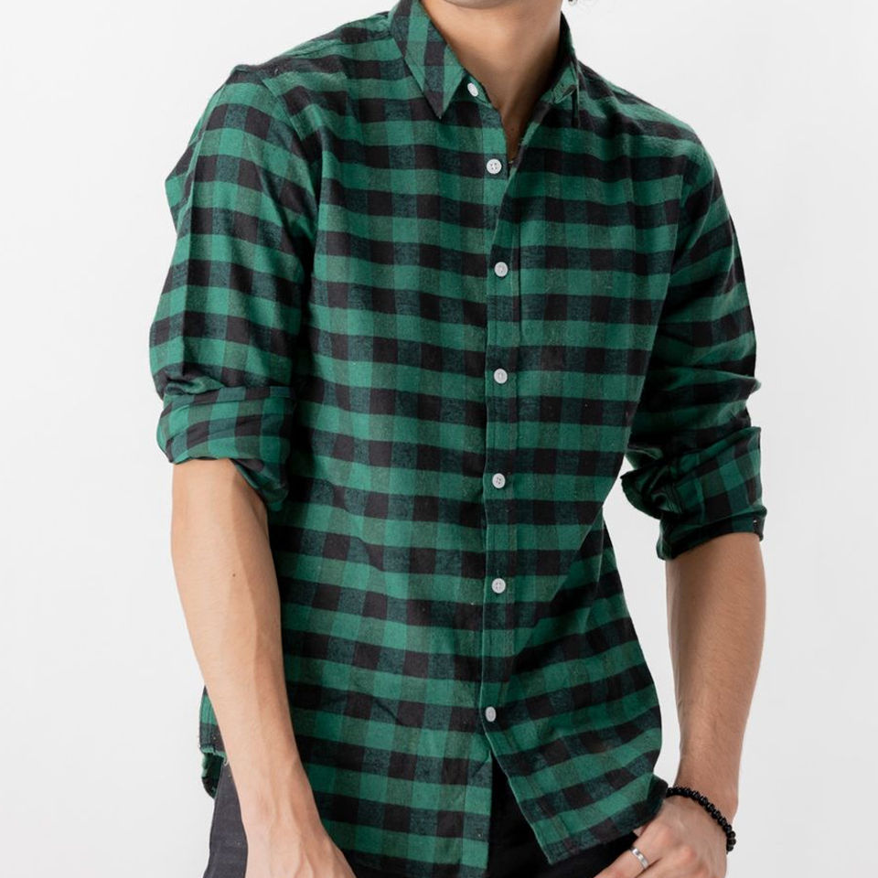 เสื้อเชิ้ตแฟลนเนลผู้ชายทรงเข้ารูป คอปกพับ ปลายเสื้อโค้ง ดีไซน์ทันสมัย สไตล์ลำลอง ผ้าฝ้าย ใส่ได้ในฤดูใบไม้ร่วง