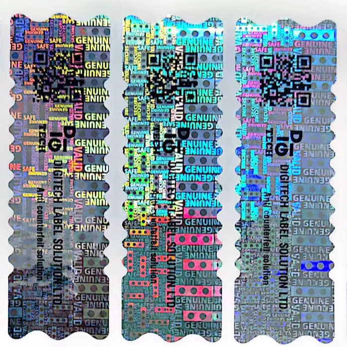 สติกเกอร์สีเงินโฮโลแกรมวัสดุกระดาษกาวสำหรับฉลากบรรจุภัณฑ์และการป้องกันแบรนด์