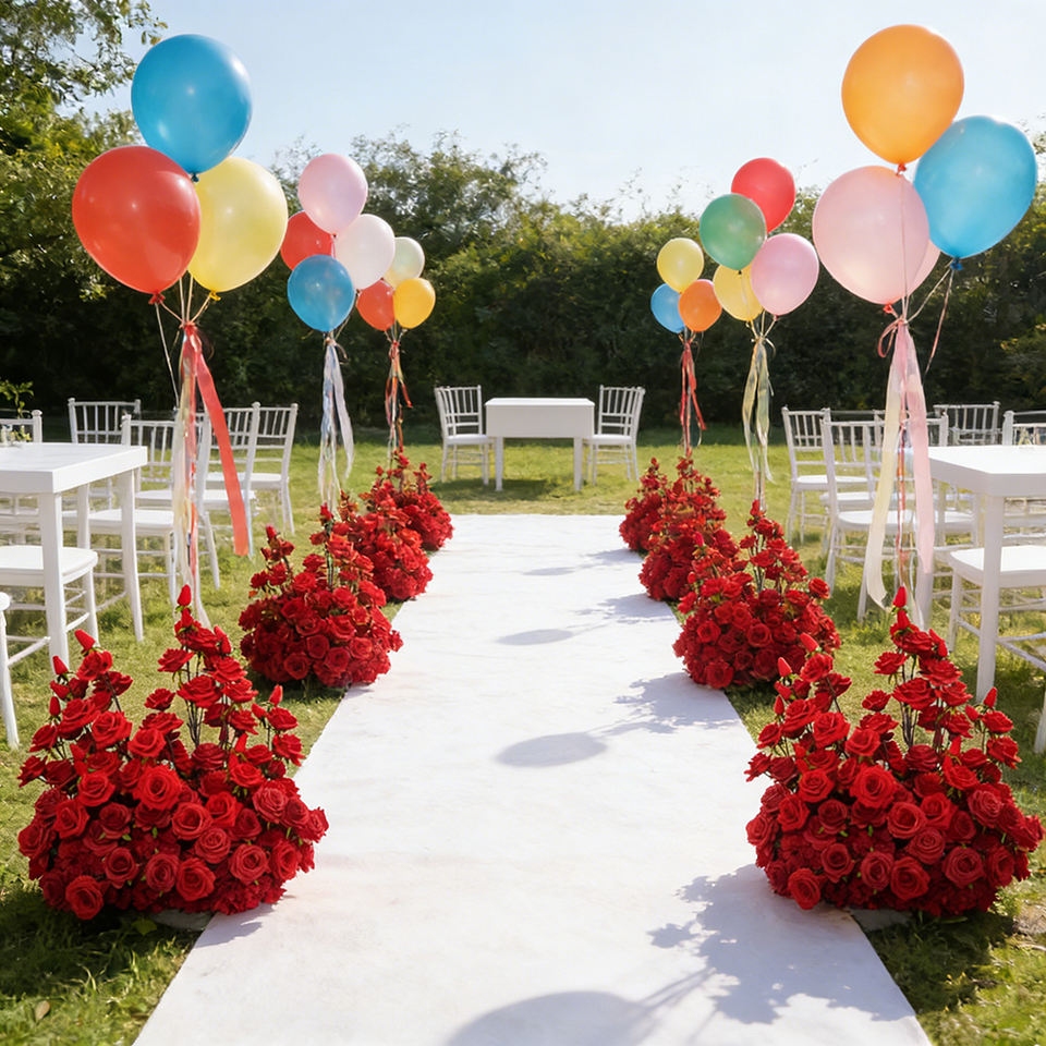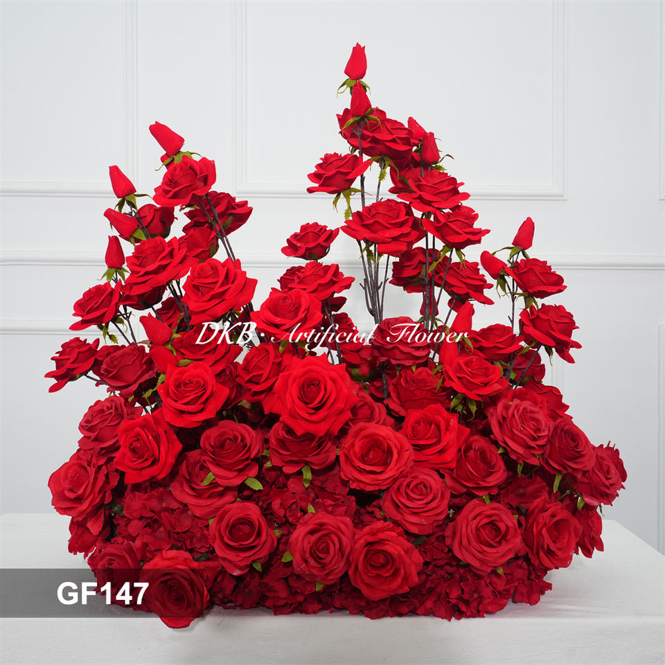 นวัตกรรมดอกไม้ล่าสุด ดอกไม้ประดับทางเดินสีแดงสดใสเหมือนจริง ทำจากผ้าไหม สำหรับงานแต่งงานและตกแต่งเทศกาลเปิดเทอม