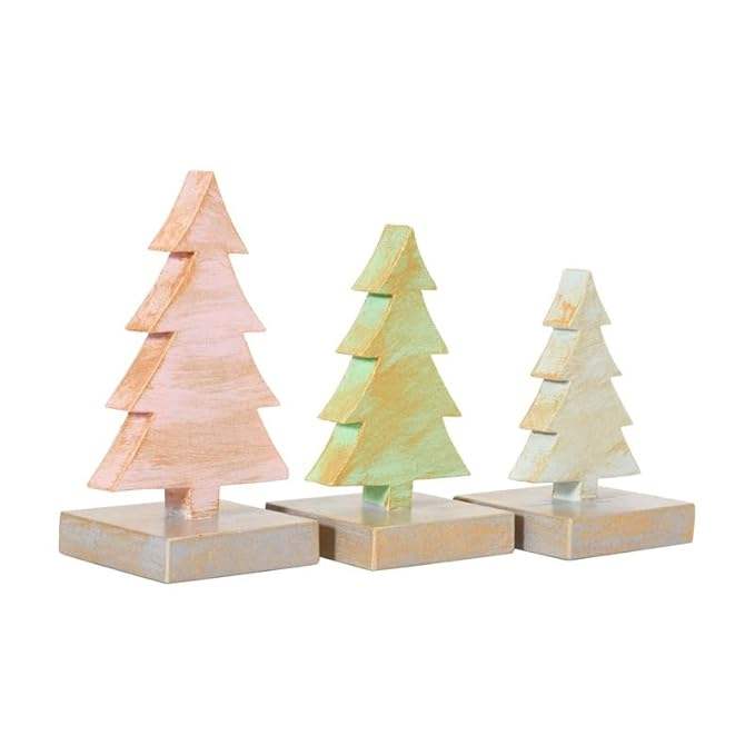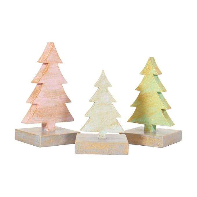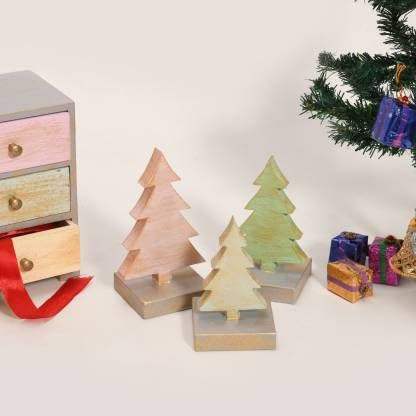 ของตกแต่งต้นคริสต์มาสทำมือจากไม้ งานฝีมือสำหรับตกแต่งภายในบ้าน ชุด 3 ชิ้น