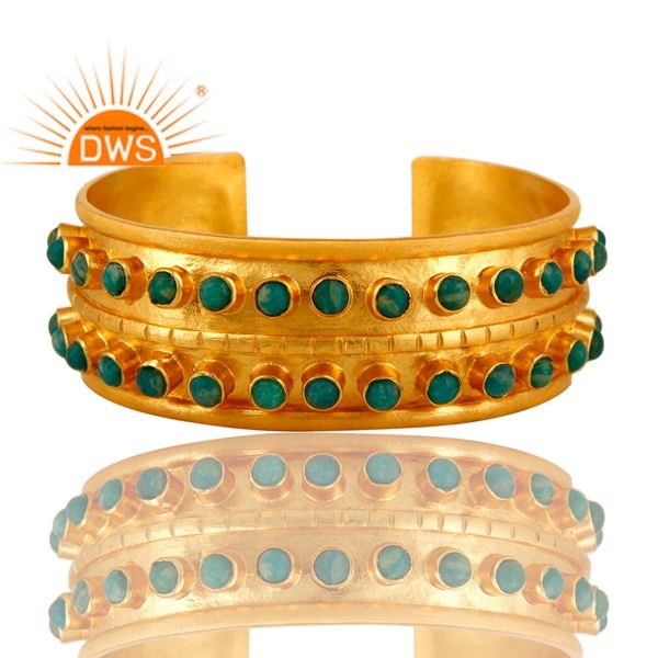 กำไลข้อมืออัญมณีอเมซอนธรรมชาติชุบทอง18K ดีไซน์ทำด้วยมือล่าสุด