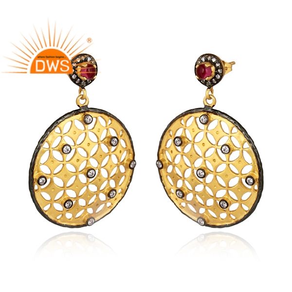 ต่างหูอัญมณีสีชมพูชุบทอง18K แบบแฮนด์เมดต่างหูเพชรสังเคราะห์สังเคราะห์สังเคราะห์จากธรรมชาติดีไซน์แบบล่าสุด