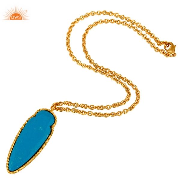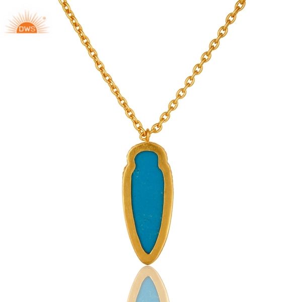 การออกแบบที่ทําด้วยมือล่าสุด18พันชุบทองเทอร์ควอยซ์ธรรมชาติพลอยลูกศรจี้สร้อยคอDemi Fineผู้ผลิตเครื่องประดับ