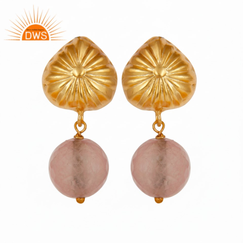 ต่างหูพลอยคาลซิโดนีชุบทอง18K ทำด้วยมือต่างหูอัญมณีรูปกุหลาบธรรมชาติแบบห้อย