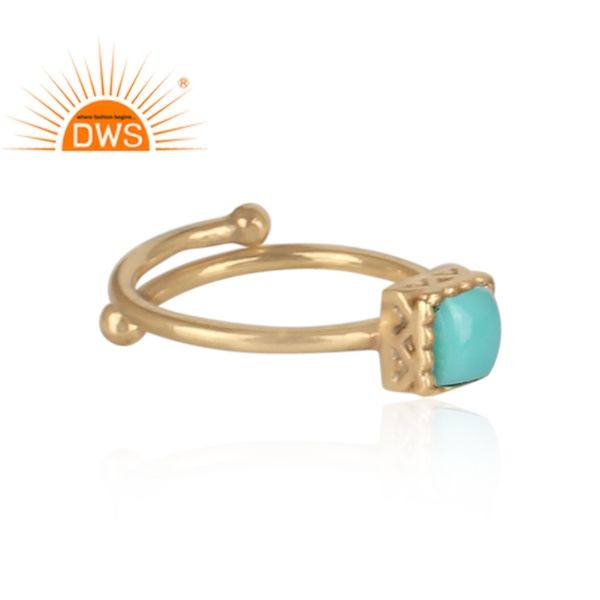 แหวนพลอยสีเทอร์ควอยส์ Arizona ธรรมชาติชุบทอง18K ดีไซน์ทำด้วยมือล่าสุดเครื่องประดับแบบวางซ้อนกันได้