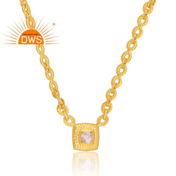 สร้อยคอจี้อัญมณีฮาวไลท์ธรรมชาติชุบทอง18K ดีไซน์ทำด้วยมือล่าสุด