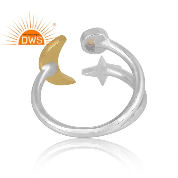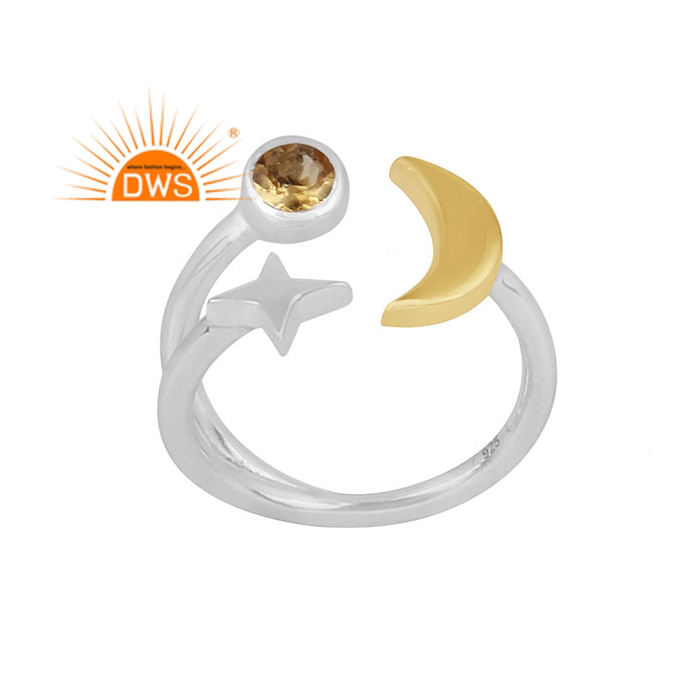 แหวนพลอยซิทรีนธรรมชาติทำมือรูปดาวและพระจันทร์เสี้ยวแหวนดีไซน์รูปพระจันทร์เสี้ยวตามธรรมชาติดีไซน์แบบทำด้วยมือล่าสุด