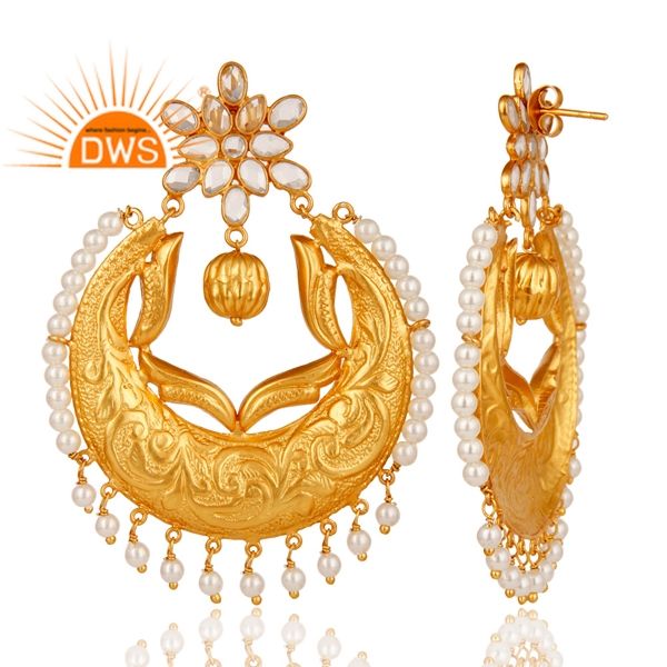 ต่างหูพลอยอเมทิสต์ประดับเพทายและไข่มุกน้ำจืดธรรมชาติชุบทองดีไซน์ล่าสุด