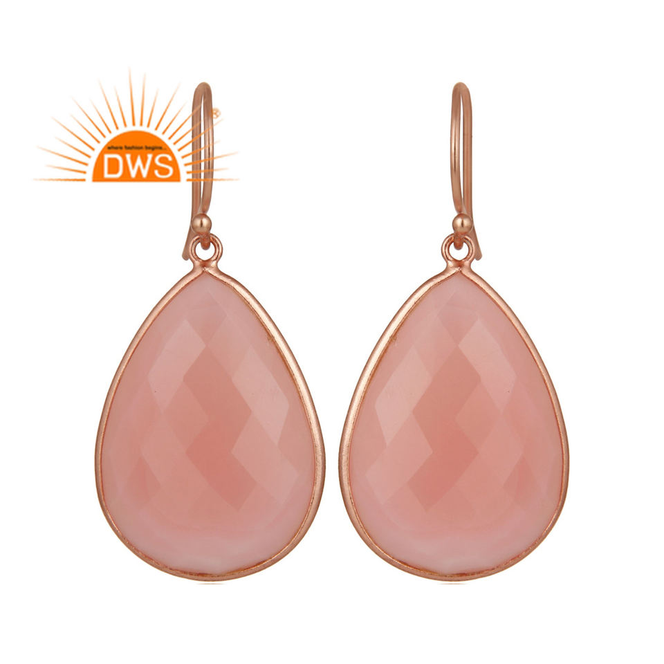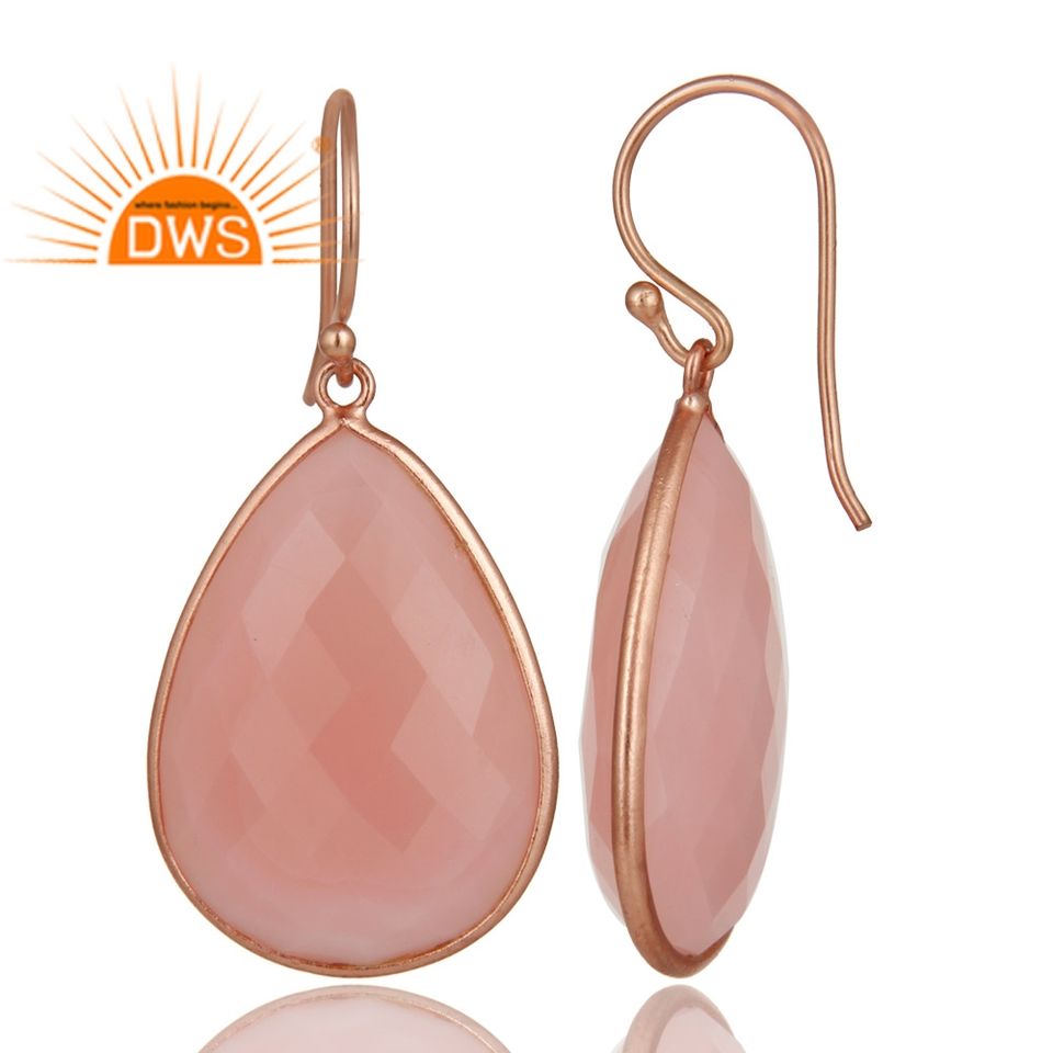 ต่างหูอัญมณีรูปกุหลาบและพลอยคาลซิโดนีทำด้วยมือสีเงินสเตอริ่งธรรมชาติดีไซน์ล่าสุด
