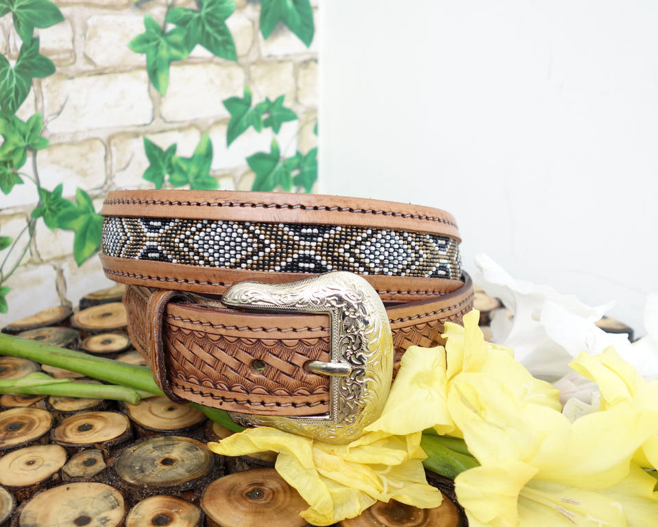 ชื่อสินค้า:เข็มขัดหนังประดับลูกปัด