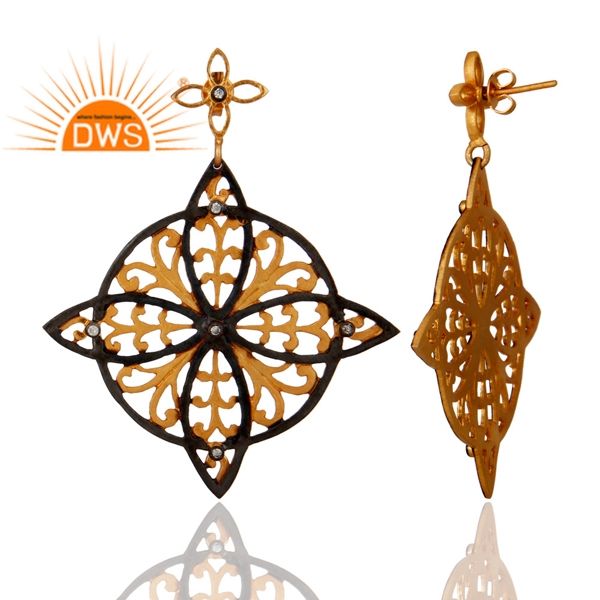 ต่างหูห้อยดีไซน์ดอกไม้ประดับเพชร CZ แท้ ชุบทอง 18k งานแฮนด์เมดล่าสุด จากผู้ผลิตเครื่องประดับเดมิไฟน์