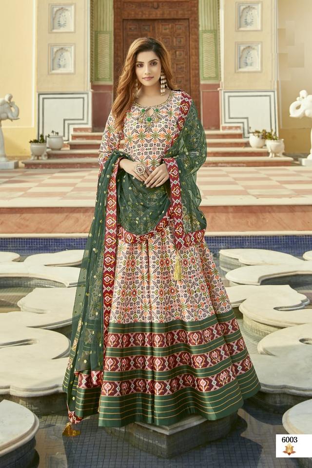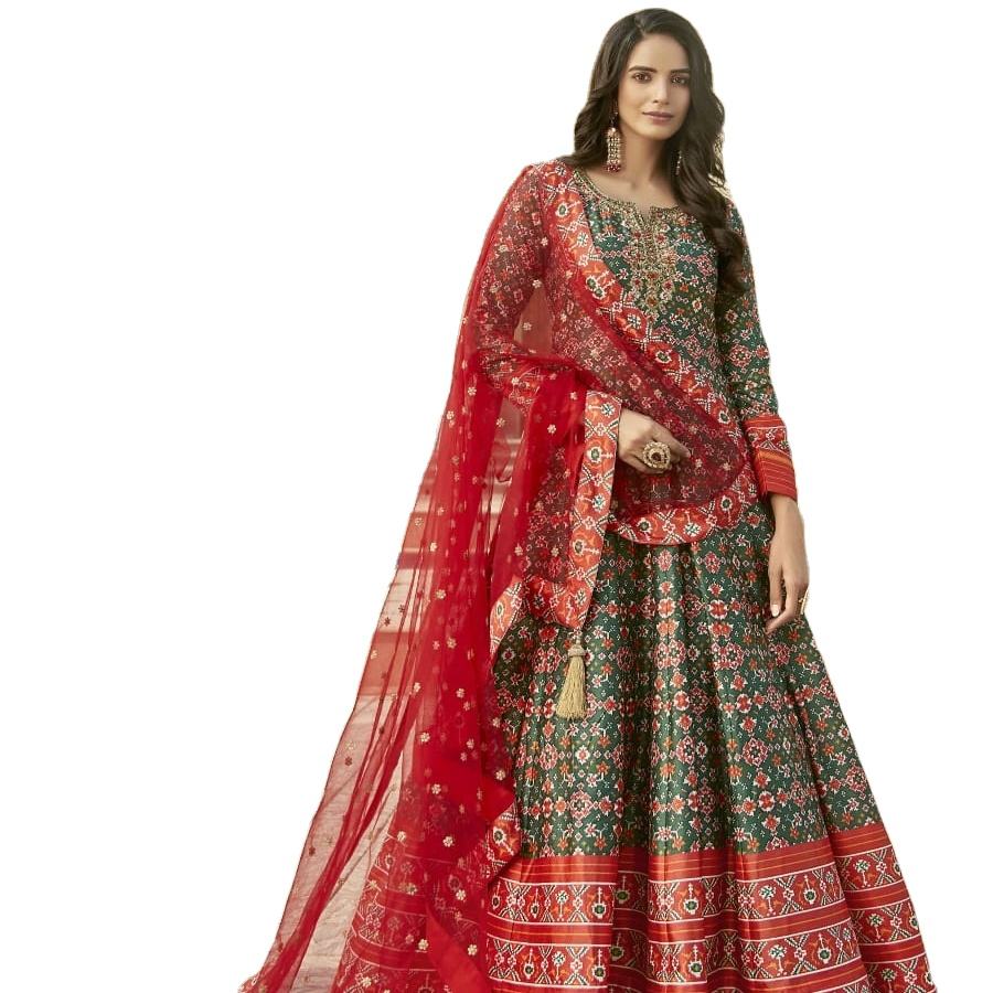 ชุดกระโปรงตาข่ายผ้าแคนแคนาตาข่ายพิมพ์ลาย patola นักออกแบบด้วยมือและดีไซน์เนอร์รุ่นล่าสุด