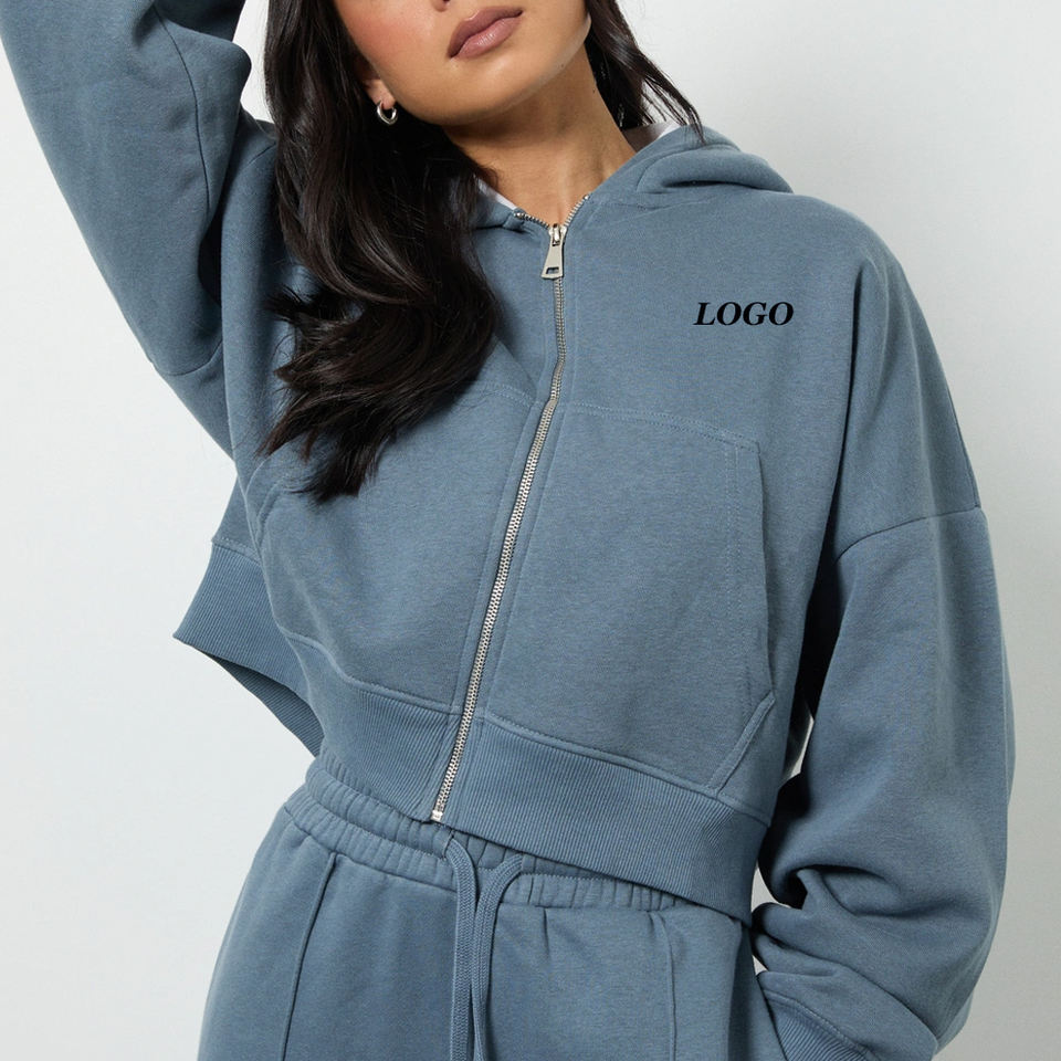 เสื้อฮู้ดซิปพิมพ์โลโก้คุณภาพสูงแบบกำหนดเองล่าสุด สำหรับคอลเลคชั่นฤดูหนาวของผู้หญิง ชุดลำลองสไตล์สปอร์ต ราคาถูก ปี 2026
