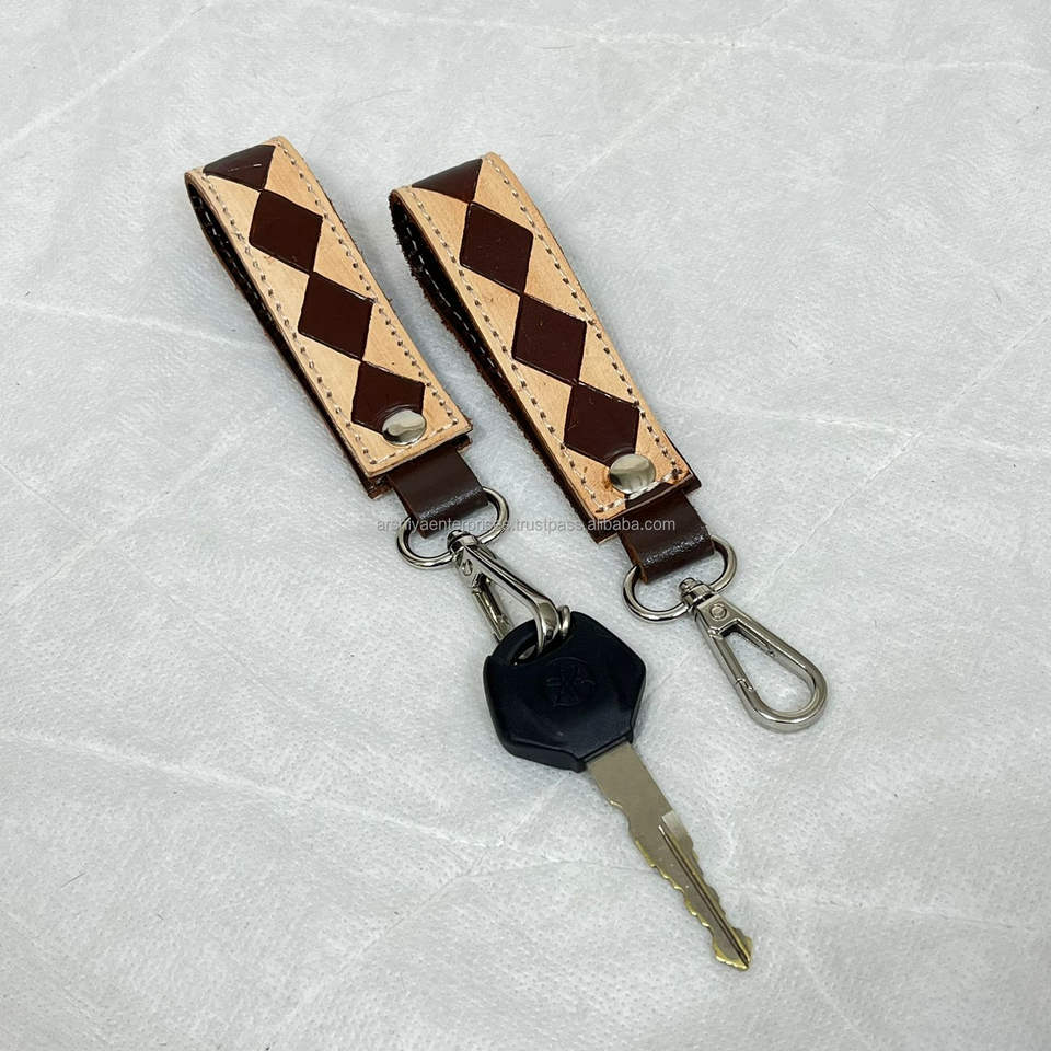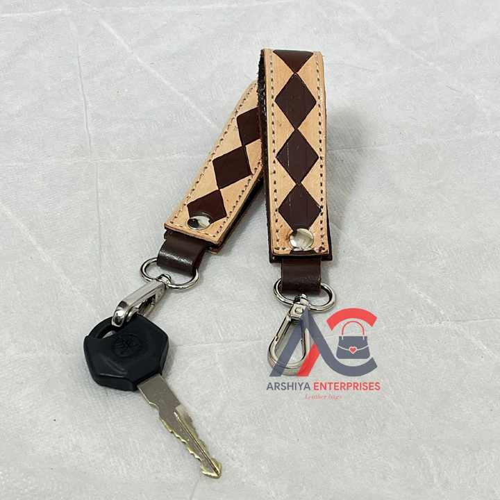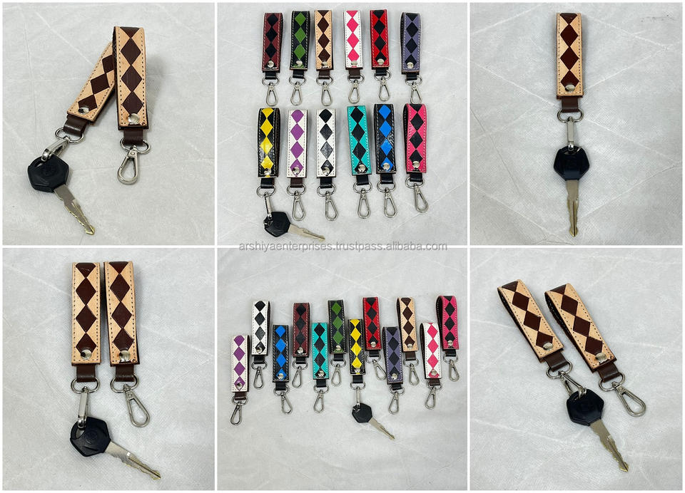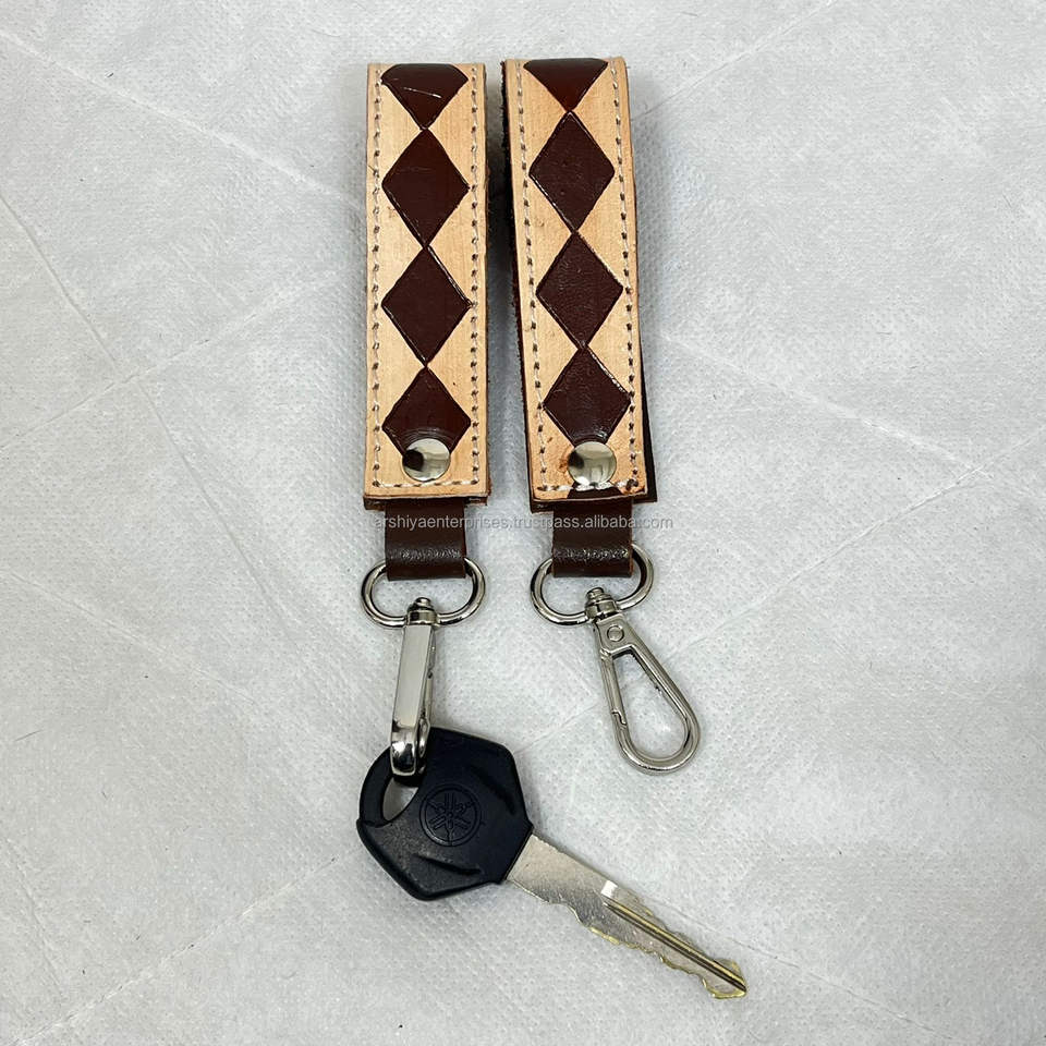พวงกุญแจหนังลายตารางหมากรุกทำมือ
