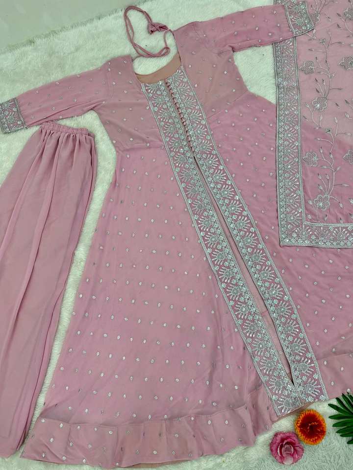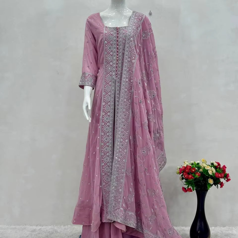ชุดชาราร่าสำหรับงานแต่งงานผู้หญิง ดีไซน์เนอร์คุณภาพสูง ล่าสุด ผลิตจากผ้าจอร์เจตต์เทียม ปักลายพร้อมลายนูน ผลิตในกูร์จัต ฟาบโซน