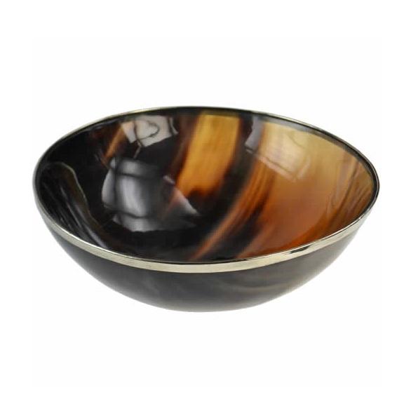ชามเสิร์ฟข้าวเขาควายฮอร์นทรงกลม,ชามสำหรับตกแต่งโต๊ะชามเขาร์นรูปทรงกลมสีธรรมชาติขัดเงาล่าสุด