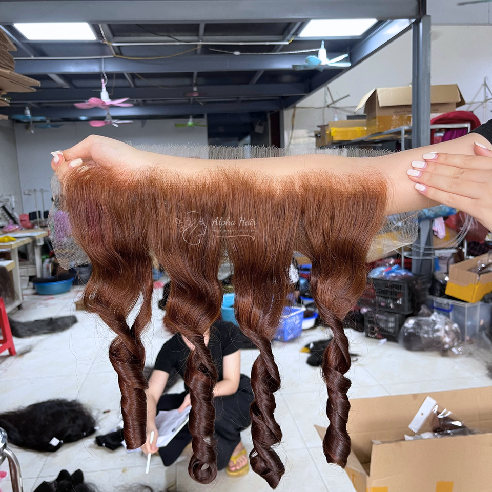 ขายร้อนล่าสุด 12A เกรดผมหยิกอินเทรนด์ผมเนื้อบางเงาดิบเวียดนามต่อผมด้านหน้าวิกผมลูกไม้