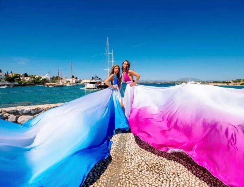ชุดเดรสสำหรับผู้หญิงชุดเดรสยาวงานหมั้นชุดเดรสลายดอกซานโตรีนีชุดถ่ายภาพใหม่ล่าสุด
