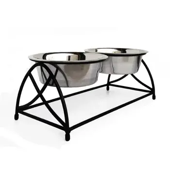 ชามและเครื่องให้อาหารสัตว์เลี้ยงทำจากสเตนเลสสตีลสำหรับใช้ในสัตว์เลี้ยงสำหรับแมวและสุนัขโลหะ