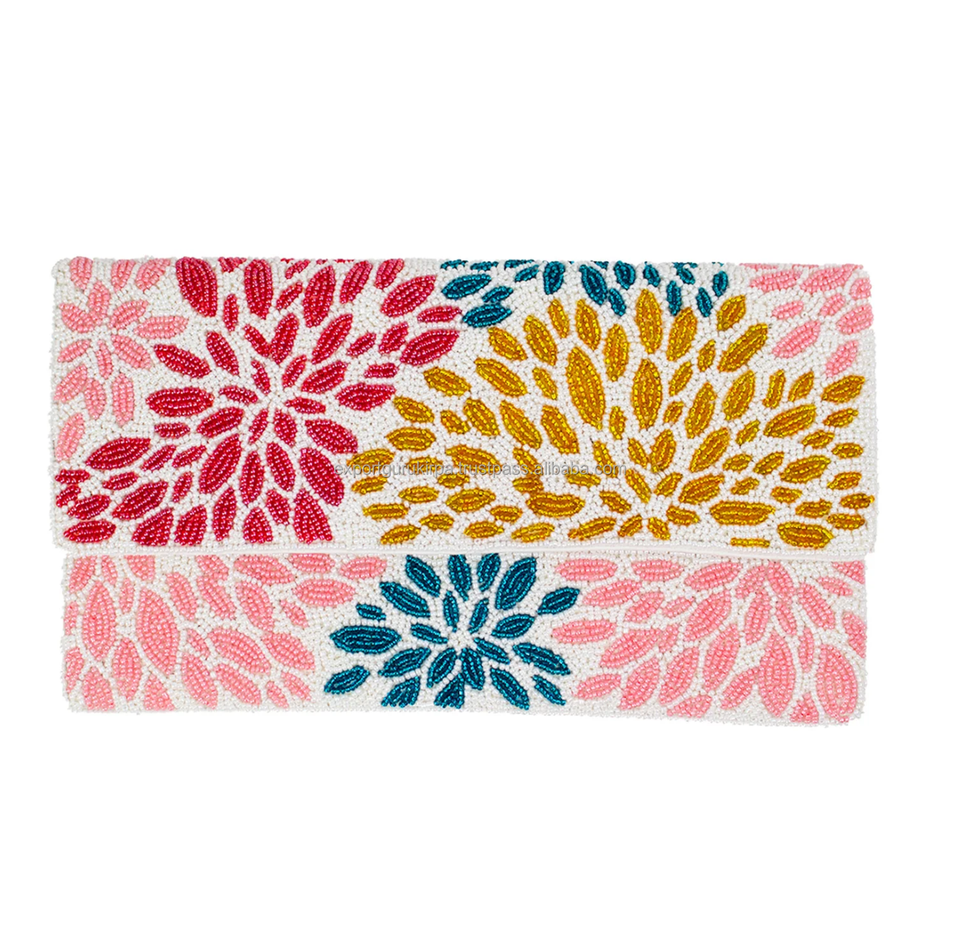 กระเป๋าแมสเซ็นเจอร์ประดับลูกปัดสไตล์โบฮีเมียนสำหรับผู้หญิงกระเป๋าคลัทช์กุยน์สไตล์โบฮีเมียนอินเดอร์สำหรับช็อปปิ้งตอนเย็นชายหาดทำมือ