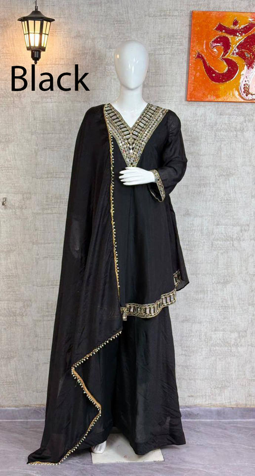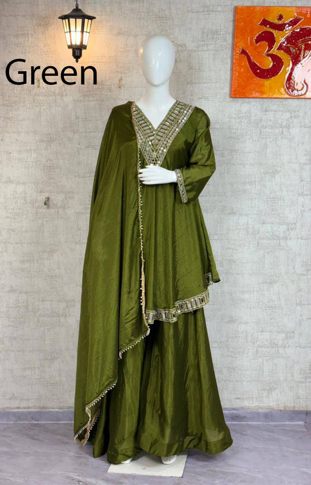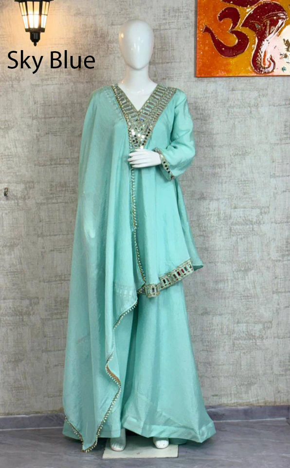 ชุดชาราร่า การาร่า คุรตี ปักลายอินเดียล่าสุด ผ้าจอร์เจตต์ สีแดง สำหรับงานปาร์ตี้ ชุดพื้นเมือง แต่งกระจกแท้ พร้อมใส่