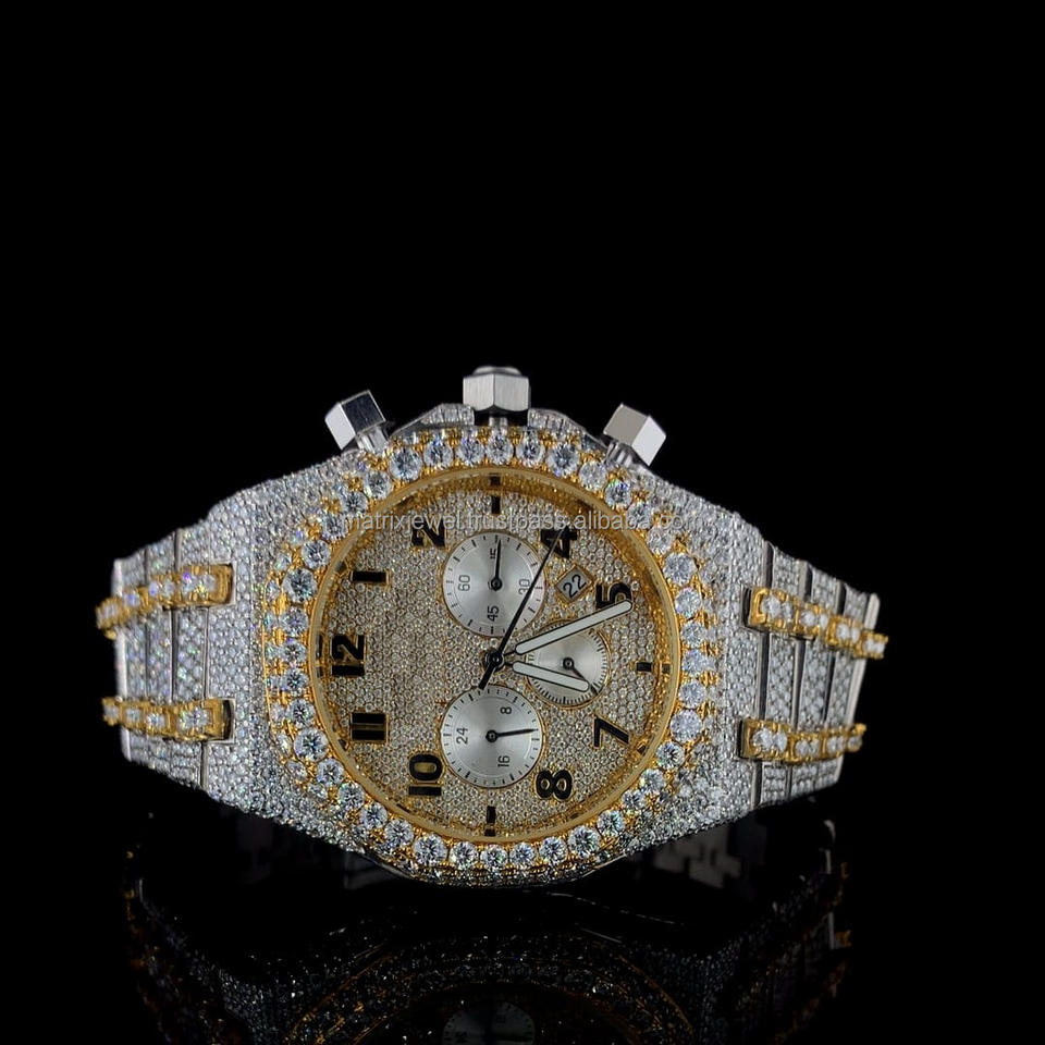 นาฬิกาเพชรสำหรับใส่ได้ทั้งชายและหญิงรุ่นล่าสุดนาฬิกาเพชรหรูหราสีทองประดับเพชร VVS CVD สำหรับใส่ได้ทั้งชายและหญิง