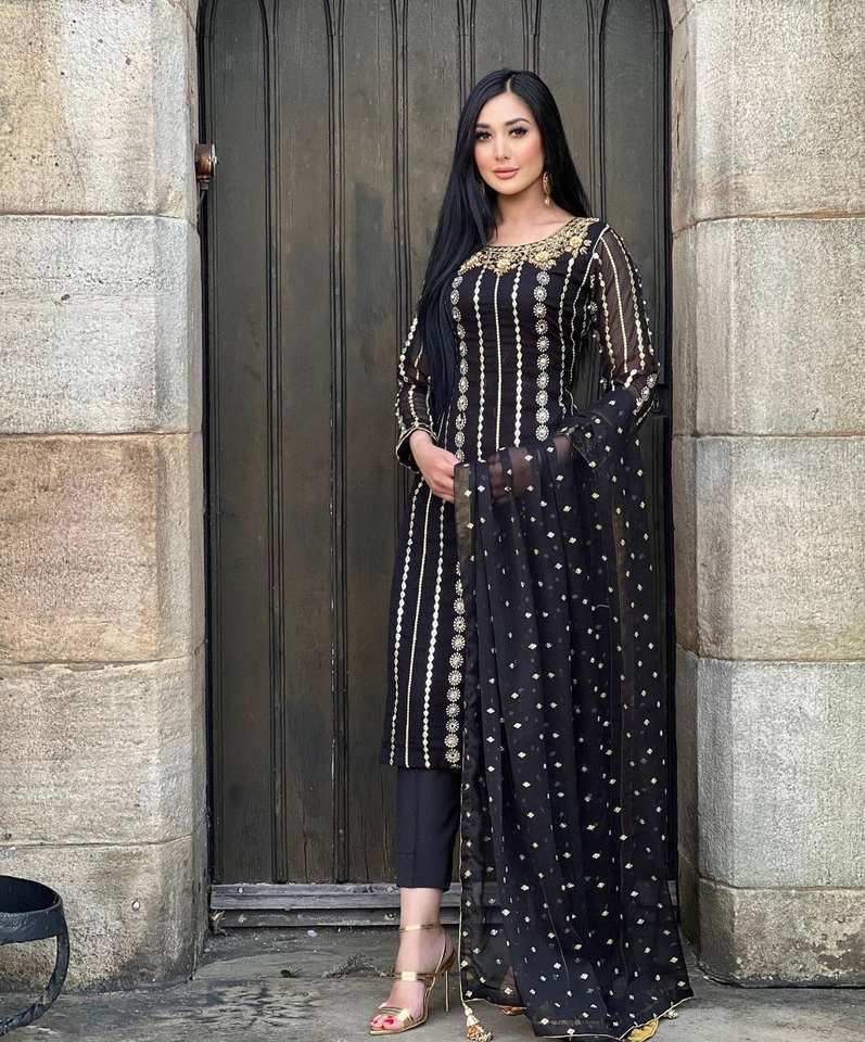 ชุดคุर्ติสยาวดีไซน์เนอร์ล่าสุดสำหรับผู้หญิง สไตล์ปากีสถาน ไซส์พลัส เสื้อผ้าผู้หญิง คุर्ติสปักลาย