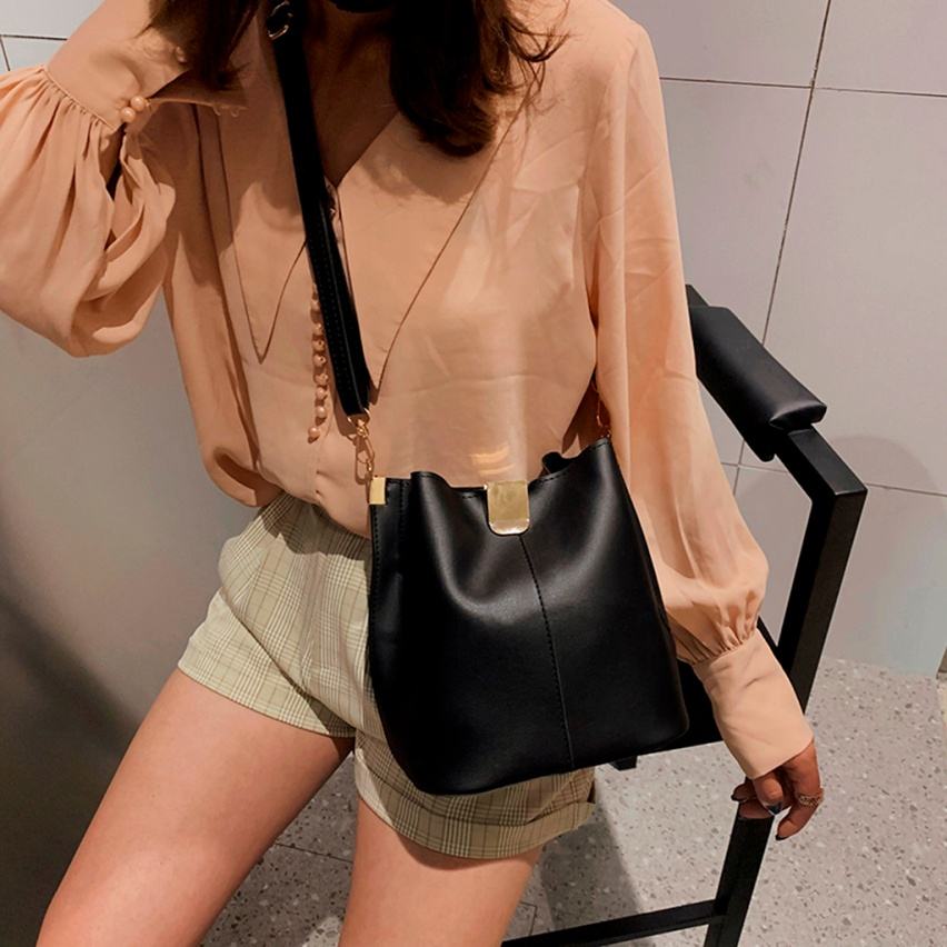 กระเป๋าทรงถังสะพาย2022หนังเทียม PU ออกแบบใหม่ล่าสุดสำหรับผู้หญิงพร้อมซิปปิดแฟชั่น