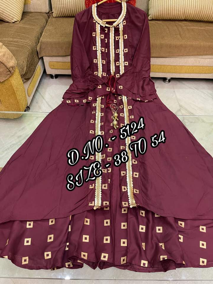 Kurti ยาวล่าสุดสำหรับผู้หญิงเสื้อผ้าเรยอนเสื้อครอปที่มีแขนกระดิ่งคู่พิมพ์สีทอง Dori และ Tessels หนักโดย Royel ส่งออก