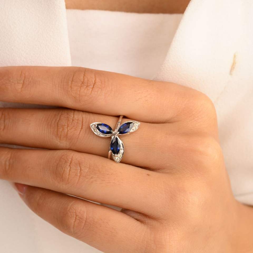 แหวนดอกไม้ประดับอัญมณีสีทองแท้14k สุดหรูพร้อมเพชรแซฟไฟร์สีฟ้าธรรมชาติ