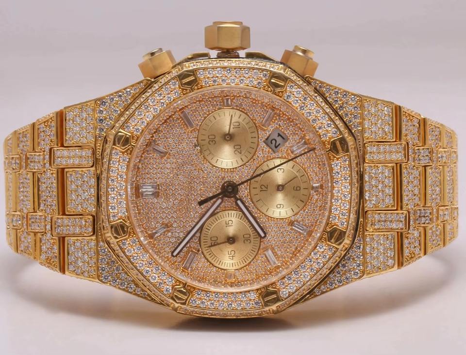 นาฬิกาสปอร์ตผู้ชายสุดหรูขนาด 41 มม. ตัวเรือนสแตนเลส หน้าปัดประดับเพชรโมอิสซาไนต์ขนาดใหญ่ โลโก้สี่เหลี่ยม ตัวเรือนอัลลอยด์ ควอตซ์ ฮิปฮอป