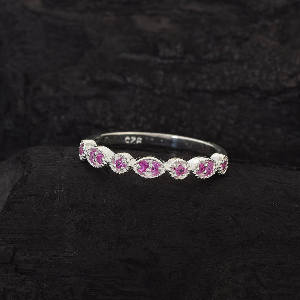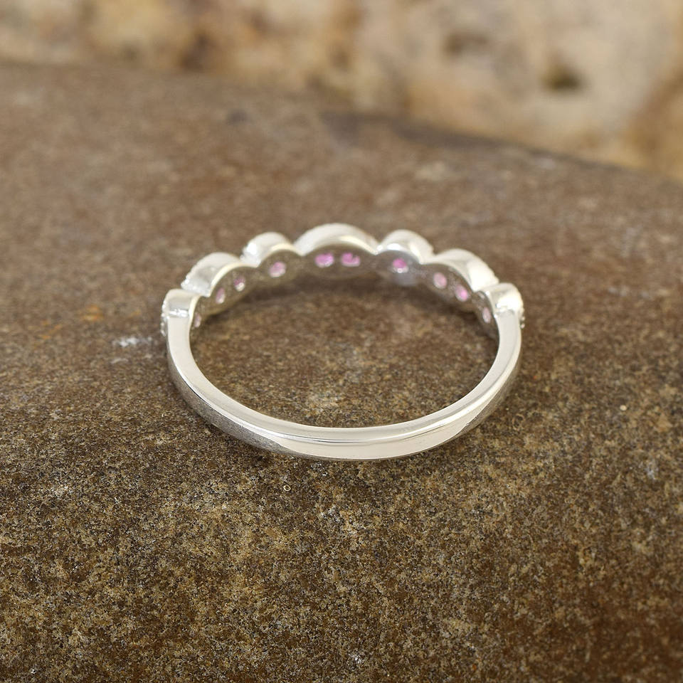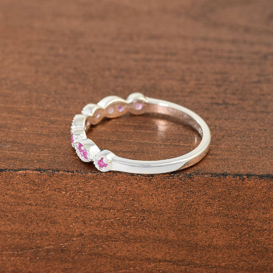แหวนเงินสเตอร์ลิงประดับพลอยสีชมพู S925สุดหรูแหวนอินฟินิตี้ครึ่งหนึ่งเครื่องประดับคุณภาพเยี่ยม