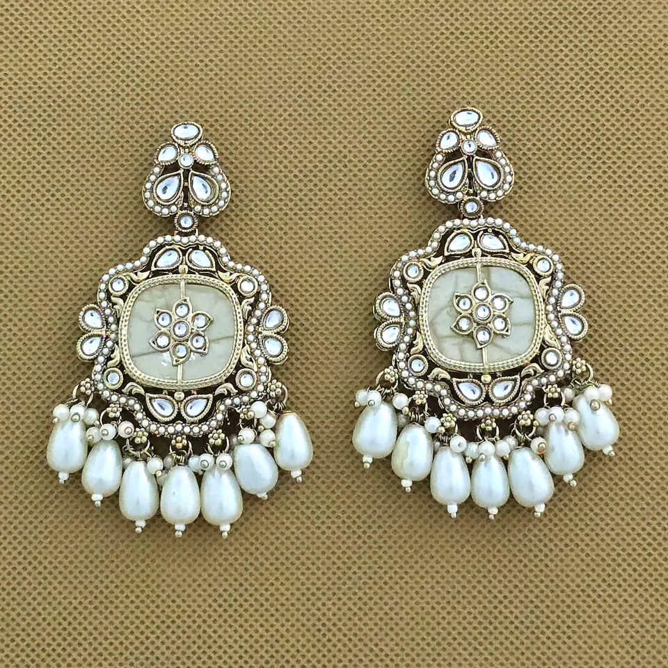 ต่างหูระย้าแฟชั่นแบบตะวันตกอินโดดีไซน์ตลาดล่าสุดแม่มุกชุบโลหะ