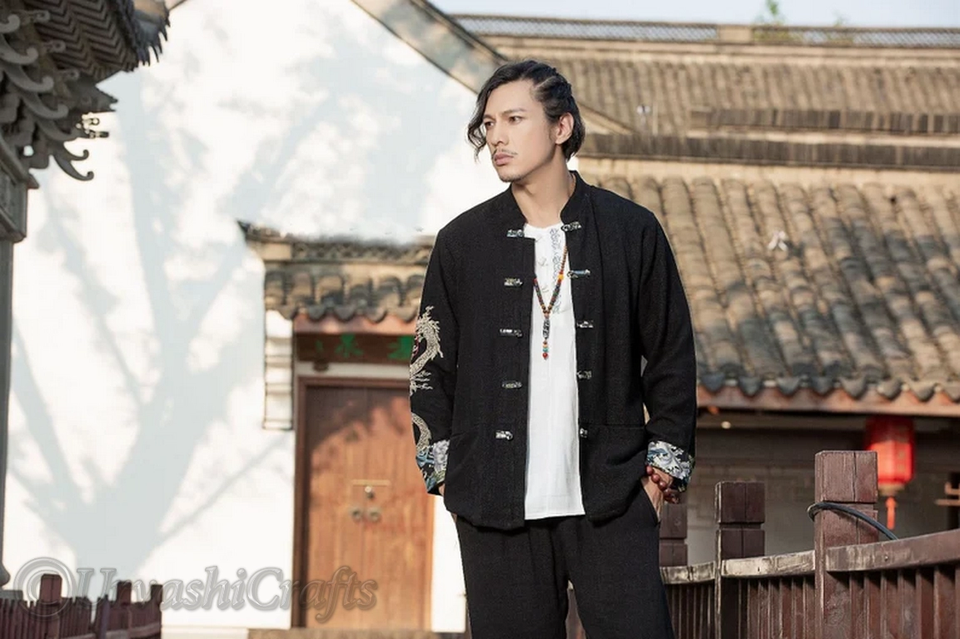 ล่าสุดผู้ชายมังกรปักวินเทจออกแบบผ้าฝ้ายผ้าลินินแฮนด์เมดแจ็คเก็ตจีนญี่ปุ่นสบายๆบุคลิกภาพแจ็คเก็ตจํานวนมาก
