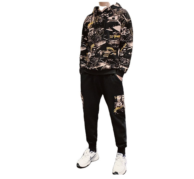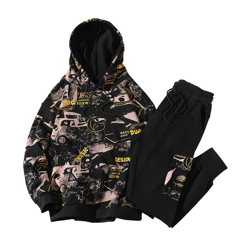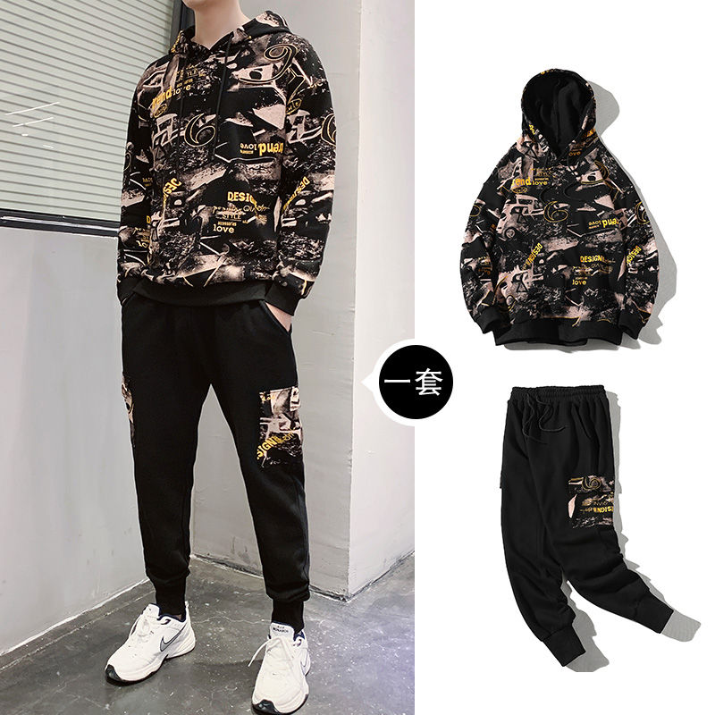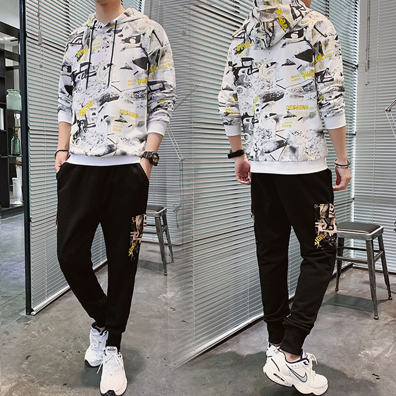 ชุดกีฬาผู้ชายแบบ 2 ชิ้น รุ่นล่าสุดสำหรับฤดูใบไม้ร่วงและฤดูหนาว ผลิตจากวัสดุรักษ์โลก แห้งเร็ว ระบายอากาศได้ดี ประกอบด้วยเสื้อฮู้ดและกางเกงขายาว