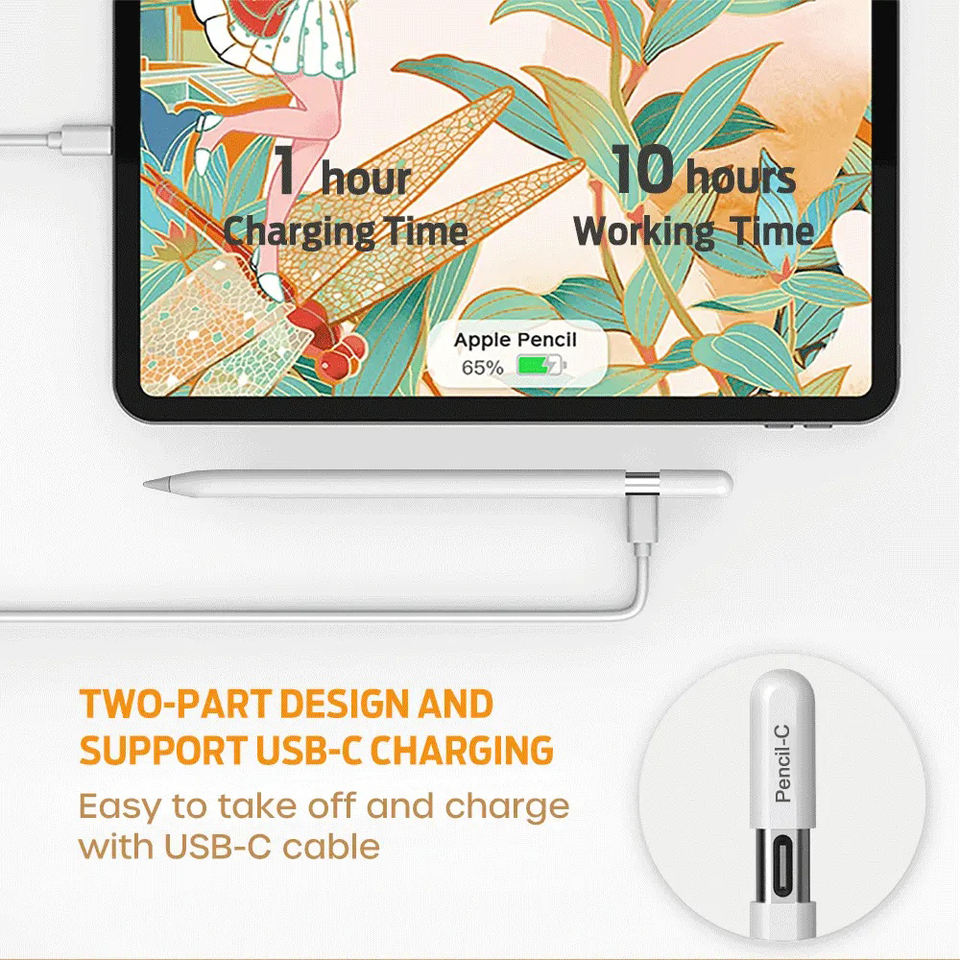 ปากกาสไตลัสรุ่นล่าสุดแบบ USB-C สำหรับ iPad (2018-2025) พร้อมพอร์ตซ่อนแบบสไลด์สวิตช์ สำหรับ Apple iPad 11 A16 Mini/Pro M4/M5, Air M2/M3