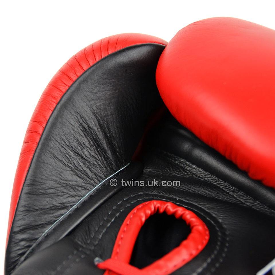 นวมชกมวยรุ่นล่าสุด สีแดงและดำ สำหรับฝึกซ้อมและแข่งขัน ทำจากหนังวัวแท้ เหมาะสำหรับมวยไทย MMA คิกบ็อกซิ่ง