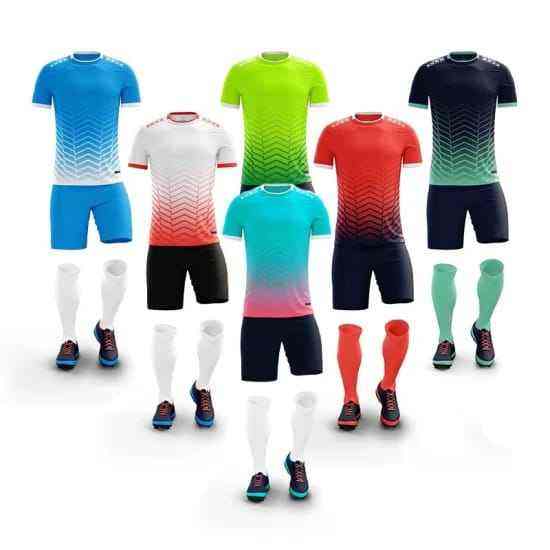 ชุดฟุตบอลแบบซับลิเมชั่นรุ่นล่าสุด พร้อมโลโก้สั่งทำ ชุดฟุตบอลชายแบบซับลิเมชั่นเต็มตัว MOQ ต่ำ ป้องกันแบคทีเรีย