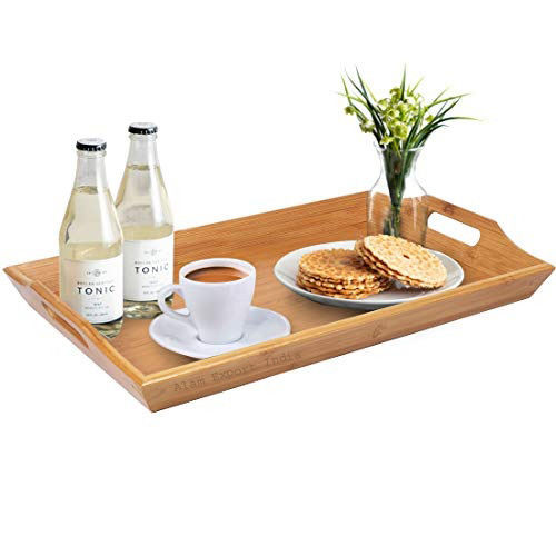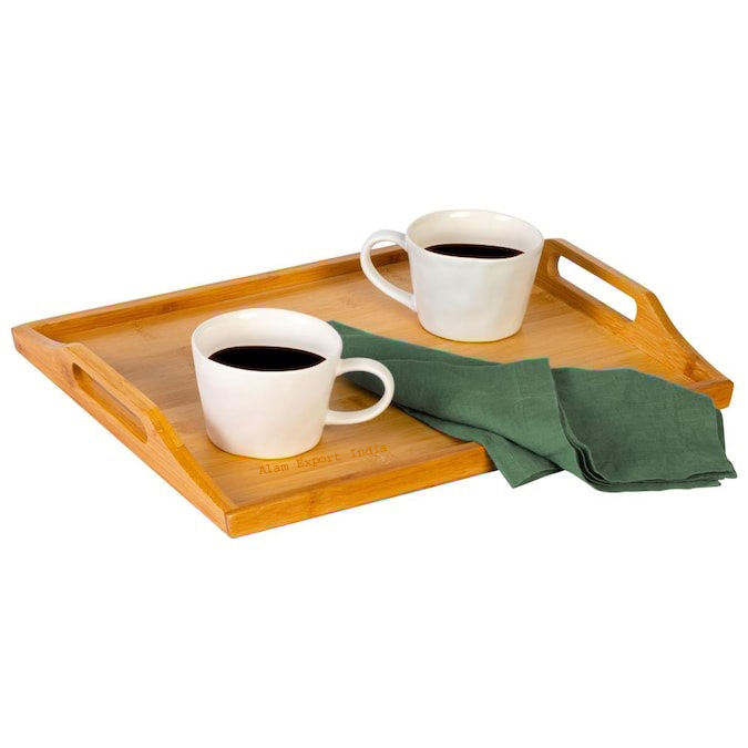 ถาดเสิร์ฟไม้ดีไซน์ทันสมัยแบบธรรมชาติพร้อมที่จับสำหรับชาของว่างจานชามในบ้าน
