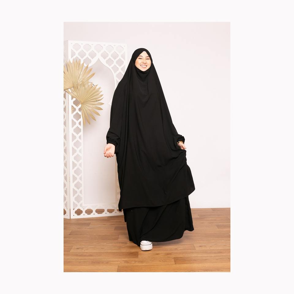 ล่าสุดเจียมเนื้อเจียมตัวฮิญาบสองชิ้นชุดสวดมนต์อาบายาชุดกระโปรงและแนบฮิญาบซาตินชุดจิลบับมุสลิม