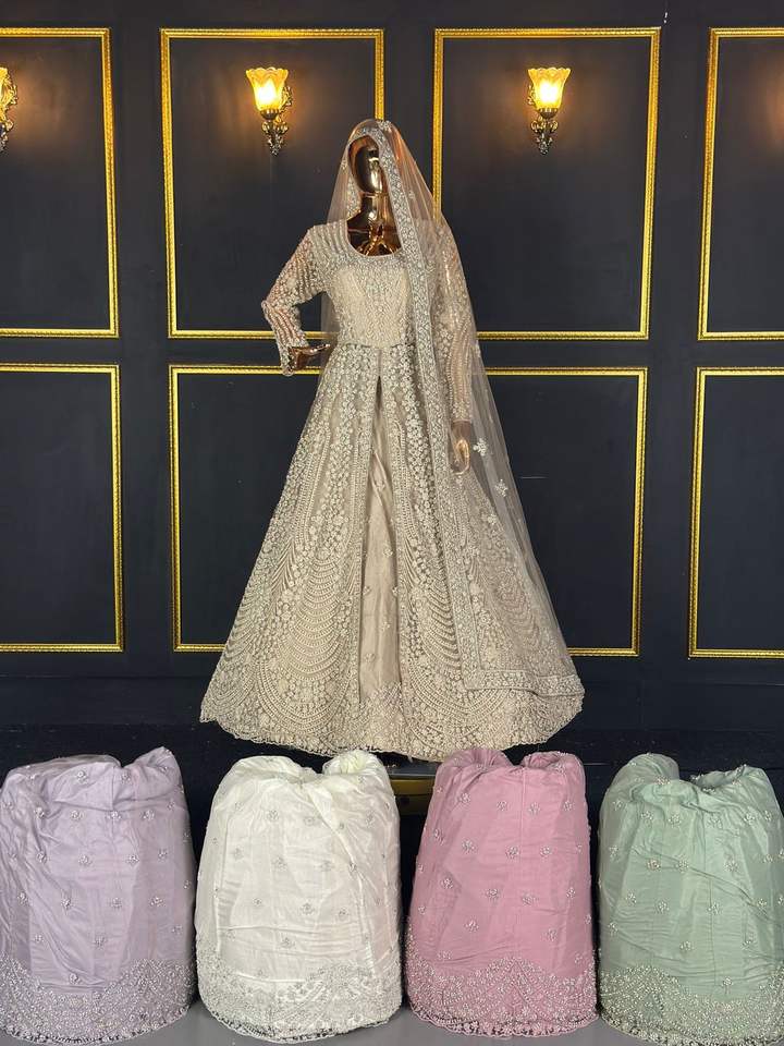 Lehenga choli หินจาร์กันสำหรับเจ้าสาวสวมใส่งานปาร์ตี้ฤดูหนาวงานแต่งแบบปักลายแบบตาข่ายออกแบบล่าสุด