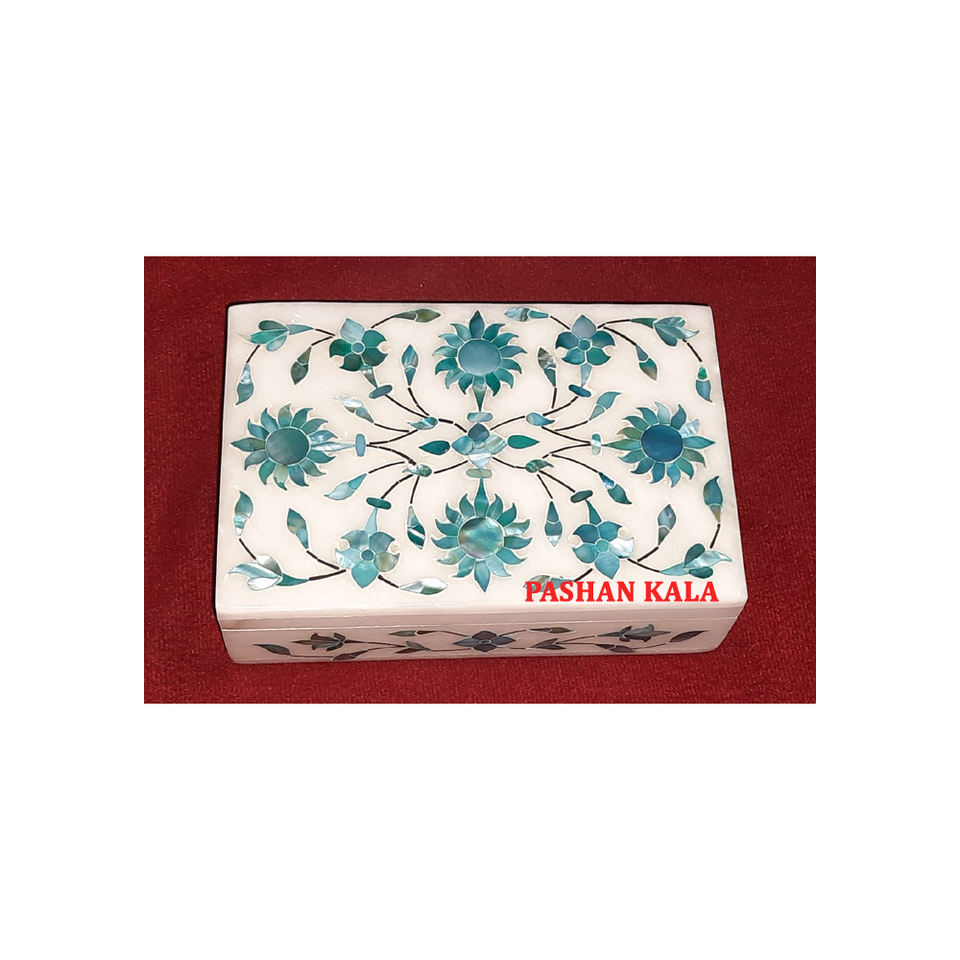 กล่องเก็บเครื่องประดับงานฝังลายหินอ่อนสีขาวทำมือพร้อมดีไซน์ดอกไม้และสีเขียวใหม่ล่าสุด