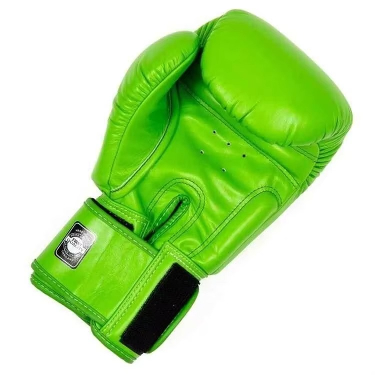 ถุงมือชกมวยไทยสำหรับผู้ใหญ่ หนังคุณภาพดี ระบายความชื้นได้ดี แบบเต็มนิ้ว รับสกรีนโลโก้ รุ่นใหม่ล่าสุด สีเขียวมะนาว