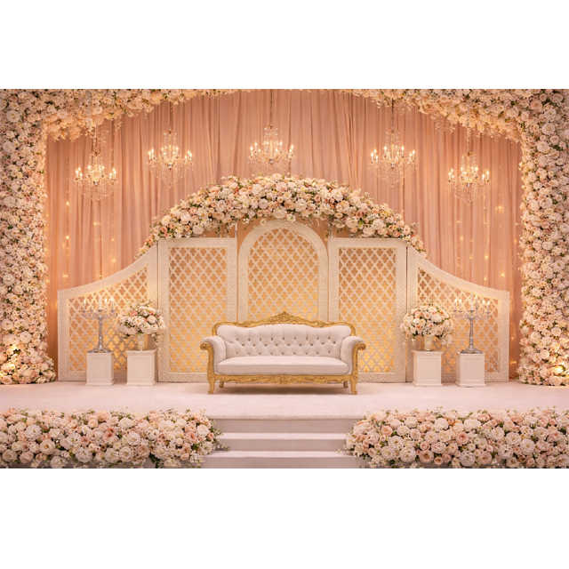 ฉากหลังงานแต่งงานแบบนิกะห์สุดหรู ดีไซน์ใหม่ล่าสุด แผงโลหะตัดเลเซอร์ ขายส่งจากโรงงานในสหรัฐอเมริกา
