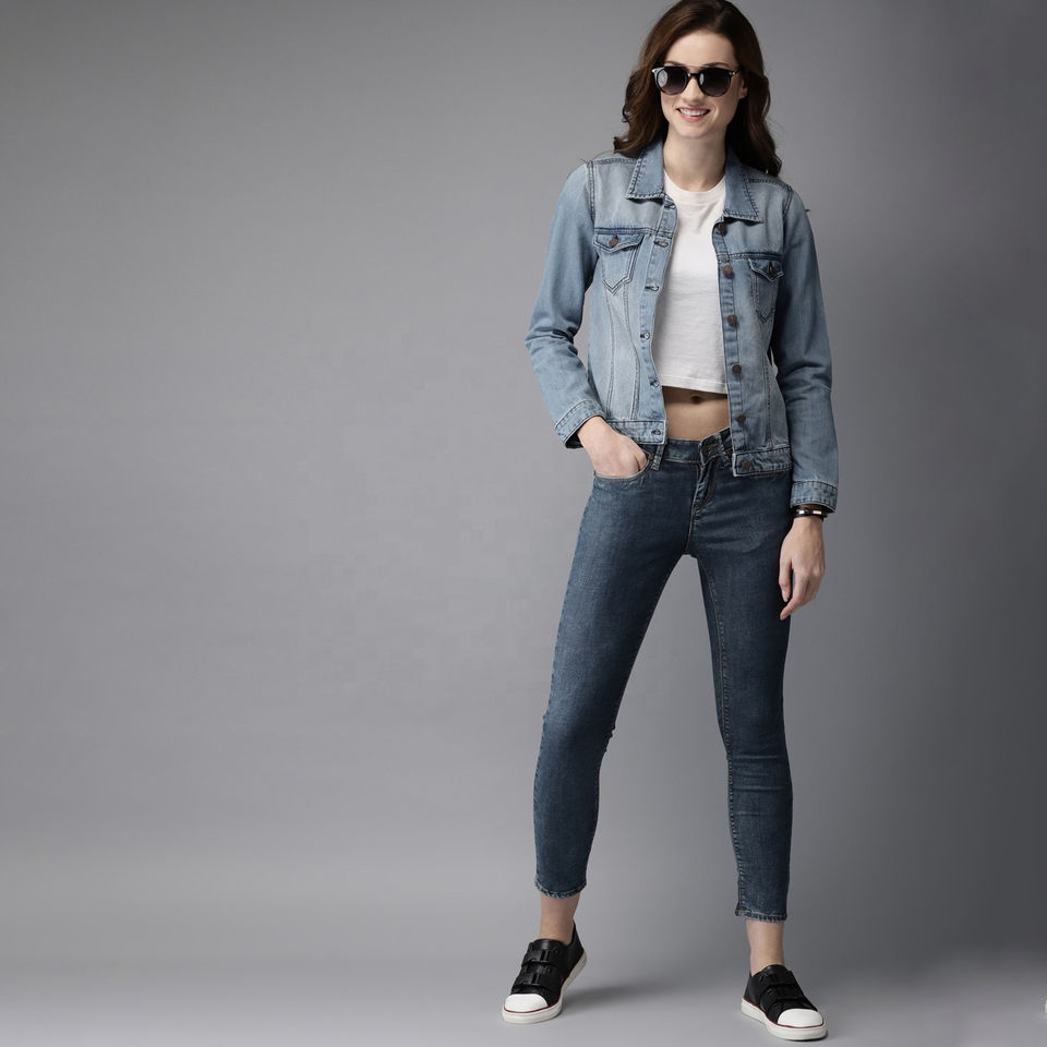 แจ็คเก็ตยีนส์แขนยาวสำหรับผู้หญิงระบายอากาศได้ดีเป็นมิตรกับสิ่งแวดล้อมปรับแต่งได้100%
