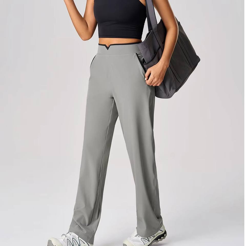 กางเกงเลกกิ้งทรงตรงเอวสูงสำหรับผู้หญิงรุ่นใหม่ล่าสุด OEM ผลิตตามสั่ง เนื้อผ้าถักน้ำหนักเบา ยืดหยุ่นได้ เหมาะสำหรับกีฬากอล์ฟ มีกระเป๋า