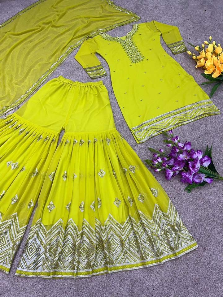 คุณสมบัติ:ชุด kurta sharara และ dupatta แบบตรง